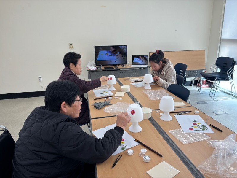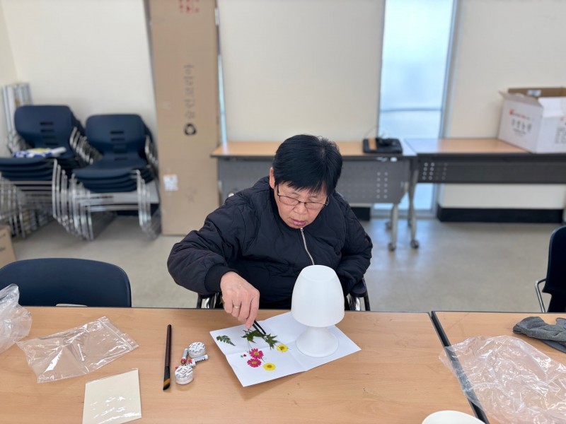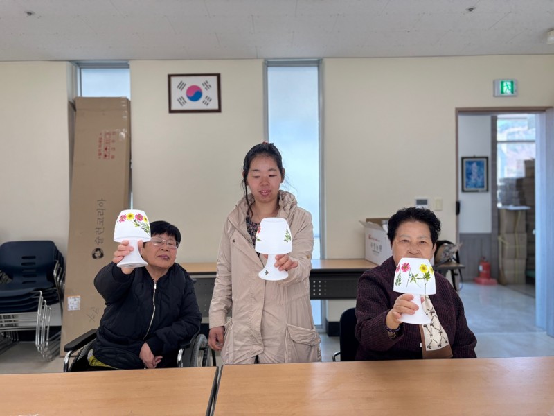 꽃을 하나씩 정성스럽게 붙여서 전등이 예뻐졌어요~^^ 매주 작품을 만들어서 전시해두면 정말 뿌듯하실 것 같아요!