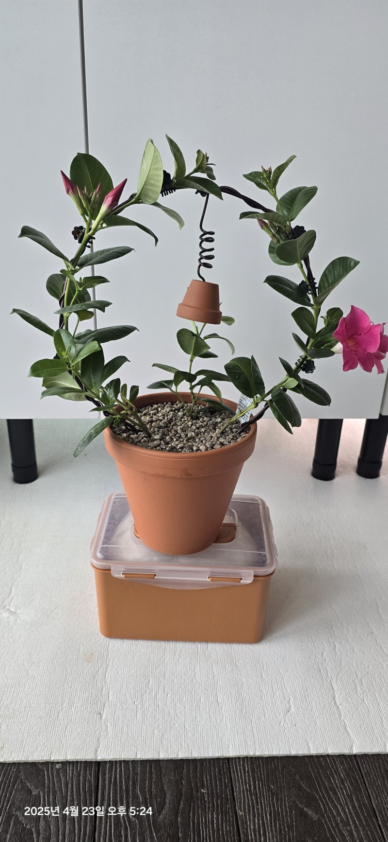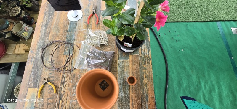 와이어로 원하는 모형을 만들어 식물의 수형을 잡아