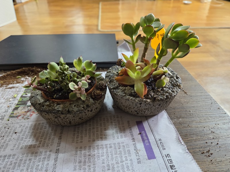 이번 한 주도 재미있게 수업하셨나요? 도우아트로 만든 독특하고 개성 있는 화분에 파릇한 다육이를 심으니 예쁘네요~^^.