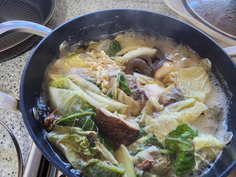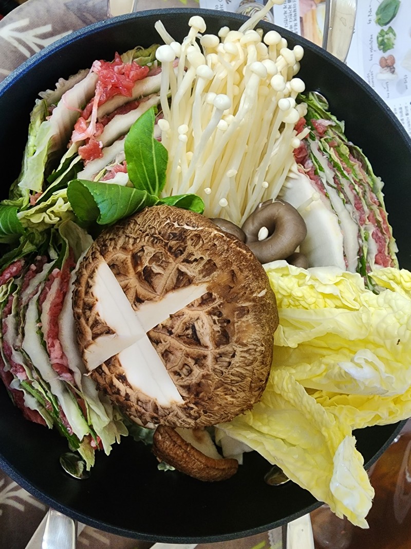 밀푀유 나베?^^ 써니럽 2 1685 2023.11.23 21:04 쌤과 함께한 이번수업은 밀푀유나베입니다.^^ 소고기는 핏물을빼고 야채,버섯은 깨끗이씻어서 배추,깻잎,소고기순으로 한겹씩 쌓아올립니다. 쌓아올린 배추,소고기를 삼등분해서 냄비에 예쁘게담고 버섯과 청경채를 올리고 육수와 물을부어 보글보글 끓여줍니다. 금방 맛있는 음식이 완성되고 소스에 콕 찍어먹으니 입안이 새콤한소스와 달큰한 야채로 가득찹니다.^^