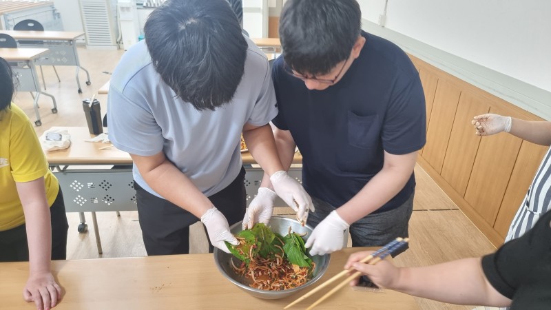 스마트홈케어-어묵볶음, 깻잎김치 이세도 1 229 07.16 11:28 어묵뽁음 하는데 여러가지 야채들이 많이 들어가서 좋았어요.야채를 많이 먹어야 건강해진다고 선생님들이 이야기 해주셨는데 오늘 요리에 야채가 많아서더 건강해질거 같아요요리를 하는데 꼭 잡채를 같다고 생각이 들어서 선생님께 이야기를 했더니여기에 당면만 삶으면 잡채랑 비슷해질거같다고 말씀해주셨어요.집에가서 어묵뽁음도 해보고 잡채도 해볼수 있을거 같아요.깻잎김치는 조금 매웠지만 생각했던거보다 쉬워서 자주 해먹을수 있을거 같아요오늘 요리수업도 너무 재미있었어요 감사합니다 선생님