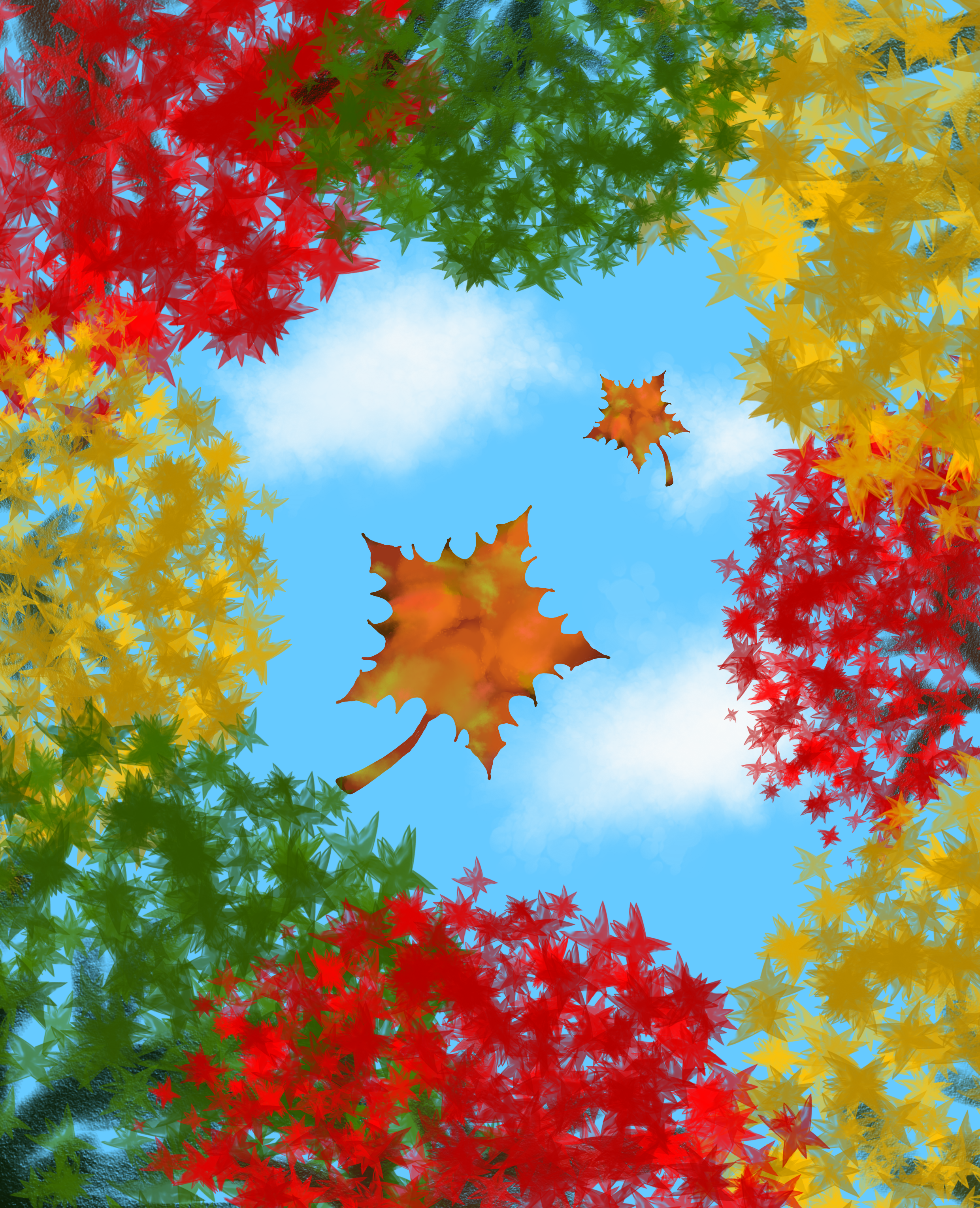 오늘은 단풍이 든 가을 하늘을 그렸어요.