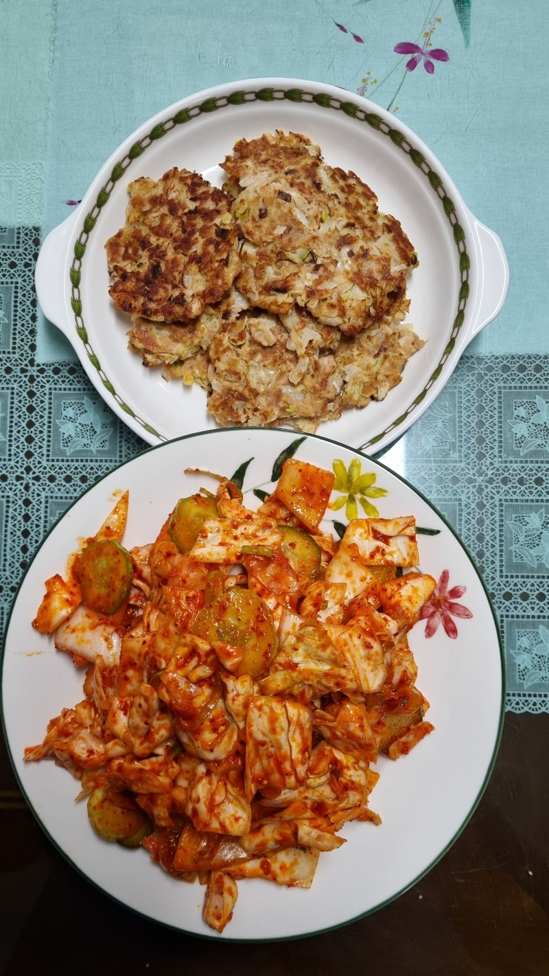 참치전과 오이양배추무침 사랑스런지영 0 7 5시간전 전이란전은 안해본것없이 많이해봤지만 참치전은처음으로 해봤는데 색다른맛이있어 맛나게잘먹었어요 전 개인적으로 참치를 별로 안좋아하거던요 근데 내가 생각한 참치 맛이아니고 전으로 해서 먹으니 바삭함에 촉촋하니 맛있었어요 올해요리 마지막수업이라 아쉬웁고 한해동안 많은 요리 배운것으로 맛난것 많이 만들어 먹을생각입니다 올한해 도수고하셨고 건강하세요