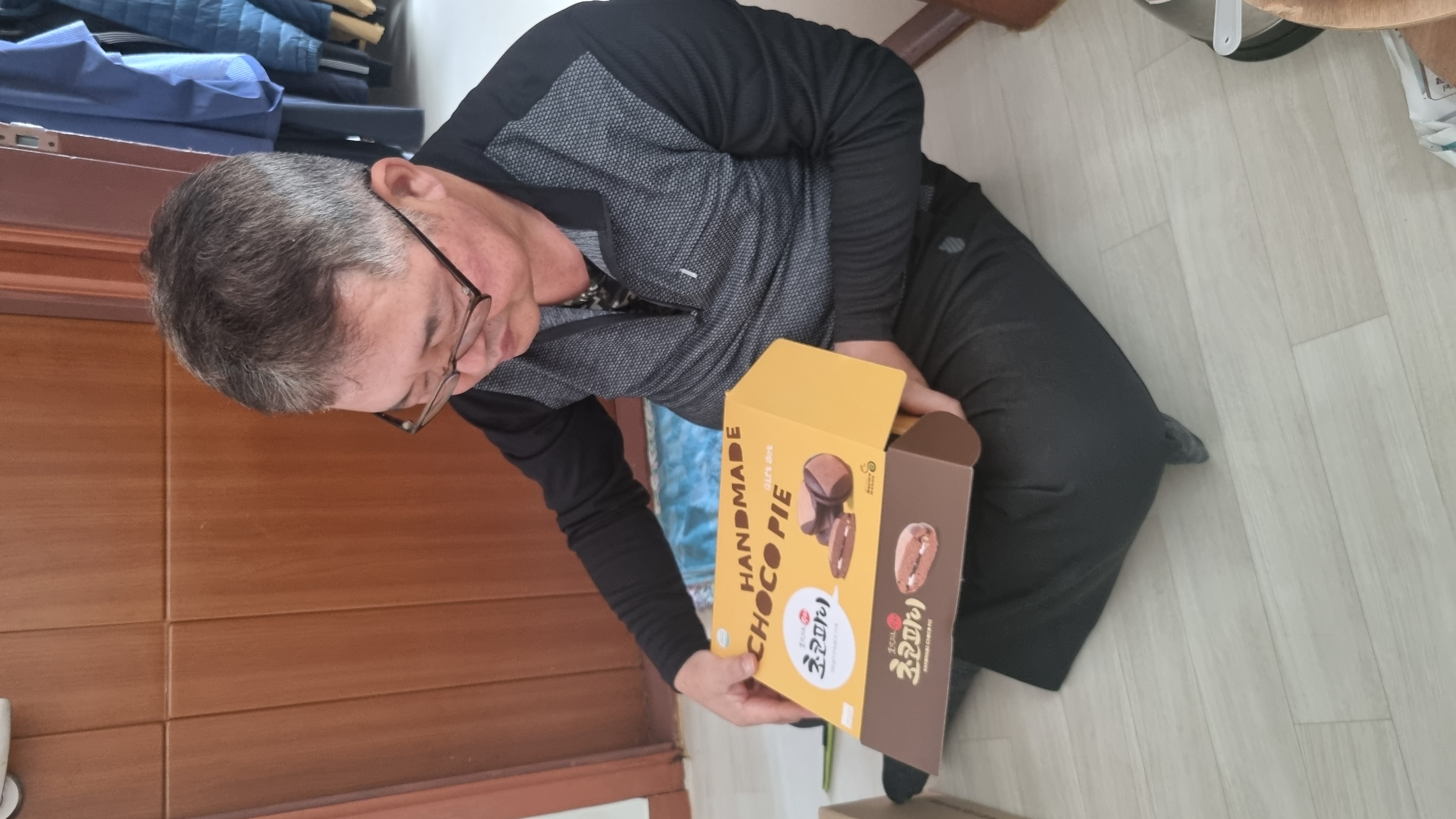 한글날 이벤트에 당첨되어 초코파이 수제를 받았어요^