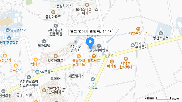 영천센터(생활이동지원센터) 영천시 0 1050 2023.07.06 11:31 시설명 영천센터(생활이동지원센터) 소재지 영천시 망정3길 10-13(망정동) 종사자 5 개소일 '02.04.03 연락처 054-338-7787 홈페이지 길찾기 지도 크게 보기