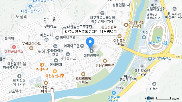 예천권병원 예천군 0 1175 2023.08.18 15:15 시설명 예천권병원 시설장 설립 학급수 소재지 경상북도 예천군 예천읍 시장로 136 연락처 054-654-6611 홈페이지 http://yckh.co.kr/ 로드뷰 길찾기 지도 크게 보기