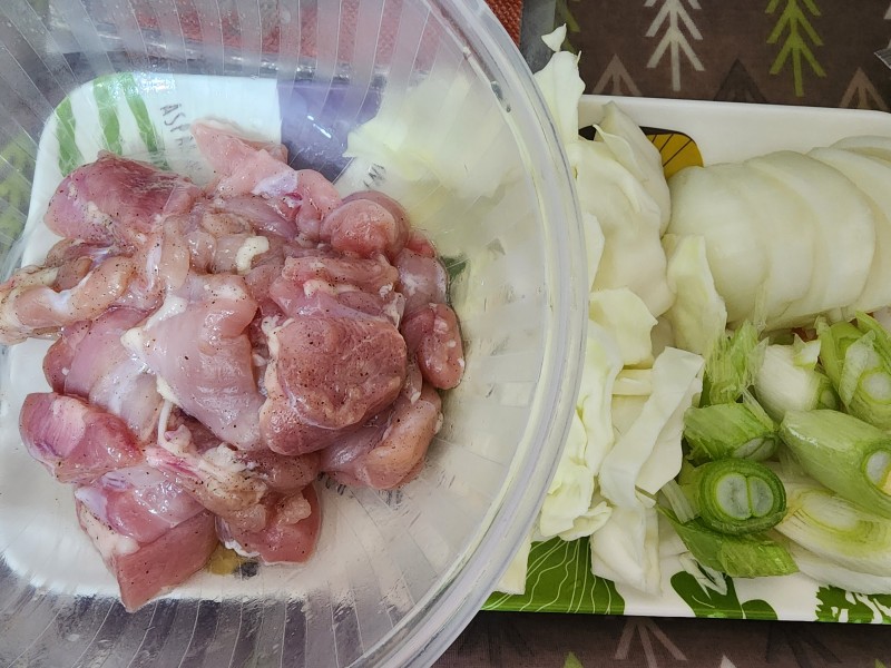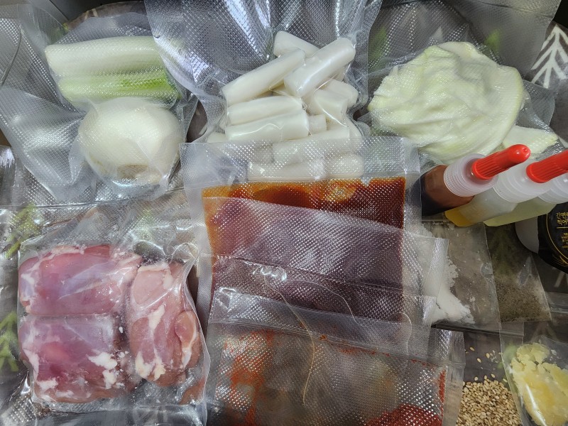 매콤한맛이 일품이었던 수업 불닭떡볶이. 먼저 채소를 두껍게썰고 닭은 비계떼고 소금,후추,맛술넣어 재워놓습니다. 양념장을 만들고 닭다리살을 구워야되는데 엥? 뭔가 뻑뻑하니 이상해서보니 닭손질한다고 쌤말씀을 흘려듣고 봉지에있는 맛술대신 약병에있는 기름을 넣는 실수를해버렸네요^^ 다시 맛술넣고굽고 채소넣고 떡볶이넣고 물넣고 양념넣고 끓이기. 한번 쌤말씀을 놓치니 따라가기 힘들었네요ㅠㅠ