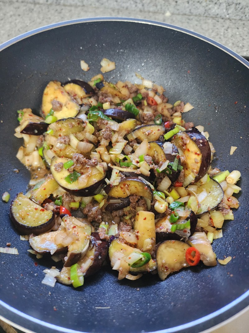 소고기 가지덮밥^^ 써니럽 1 1027 2024.10.31 07:02 가지는 반갈라 소금,후추로 간해두고 양파,파,청양고추는 다져서준비. 다진소고기는 양념에 재워둡니다. 팬에 올리브유 두르고 가지볶아내고 소고기를 볶은후 다시 가지와 다진 양파,파,고추를 함께볶아 따듯한밥위에 예쁘게 착! 정말 간단하고 맛있는 덮밥이었어요. 울집 맵찔이 식구들때문에 청양고추를 골라내느라 애먹었지만 저한텐 매콤한맛이 일품인 가지덮밥이었읍니다^^